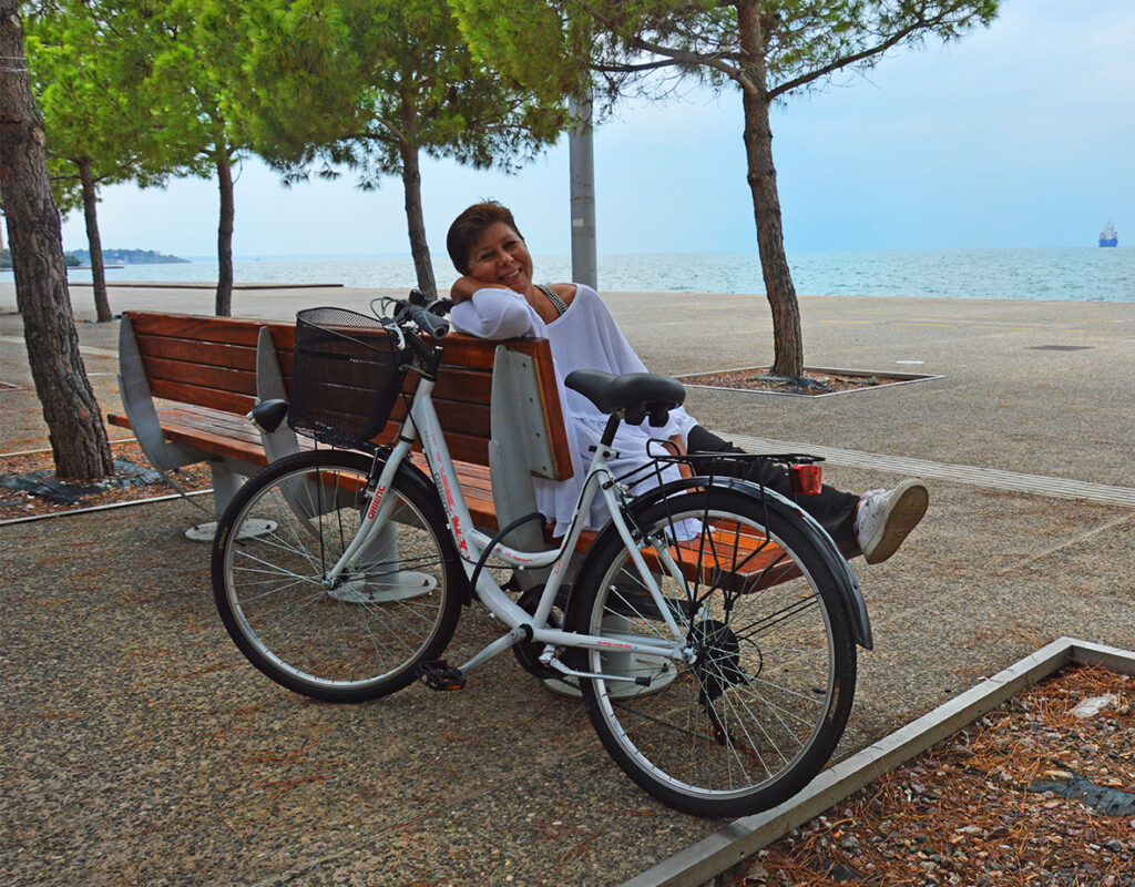 «Είναι ευκολία, είναι άσκηση (η μόνη που κάνω) και μου δίνει και μια αίσθηση ελευθερίας. Κυρίως όμως βαριέμαι πάρα πολύ το περπάτημα. Μέσα στην πόλη σχεδόν πάντα κινούμαι με το ποδήλατο. Με αυτοκίνητο ποτέ, διότι δεν οδηγώ. Με τα πόδια, μόνο όταν μου κλέβουν το ποδήλατο. Δηλαδή, τρεις φορές μέχρι τώρα, αυτό είναι το τέταρτο.