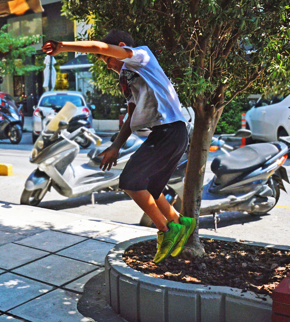 Πηγαίνει δευτέρα δημοτικού και, προς το παρόν, πηδάει από δέντρα και τοιχάκια. Από πού θα πηδάει σε μερικά χρόνια, δεν θέλω να το σκεφτώ. Μάλλον ούτε και η μαμά του.