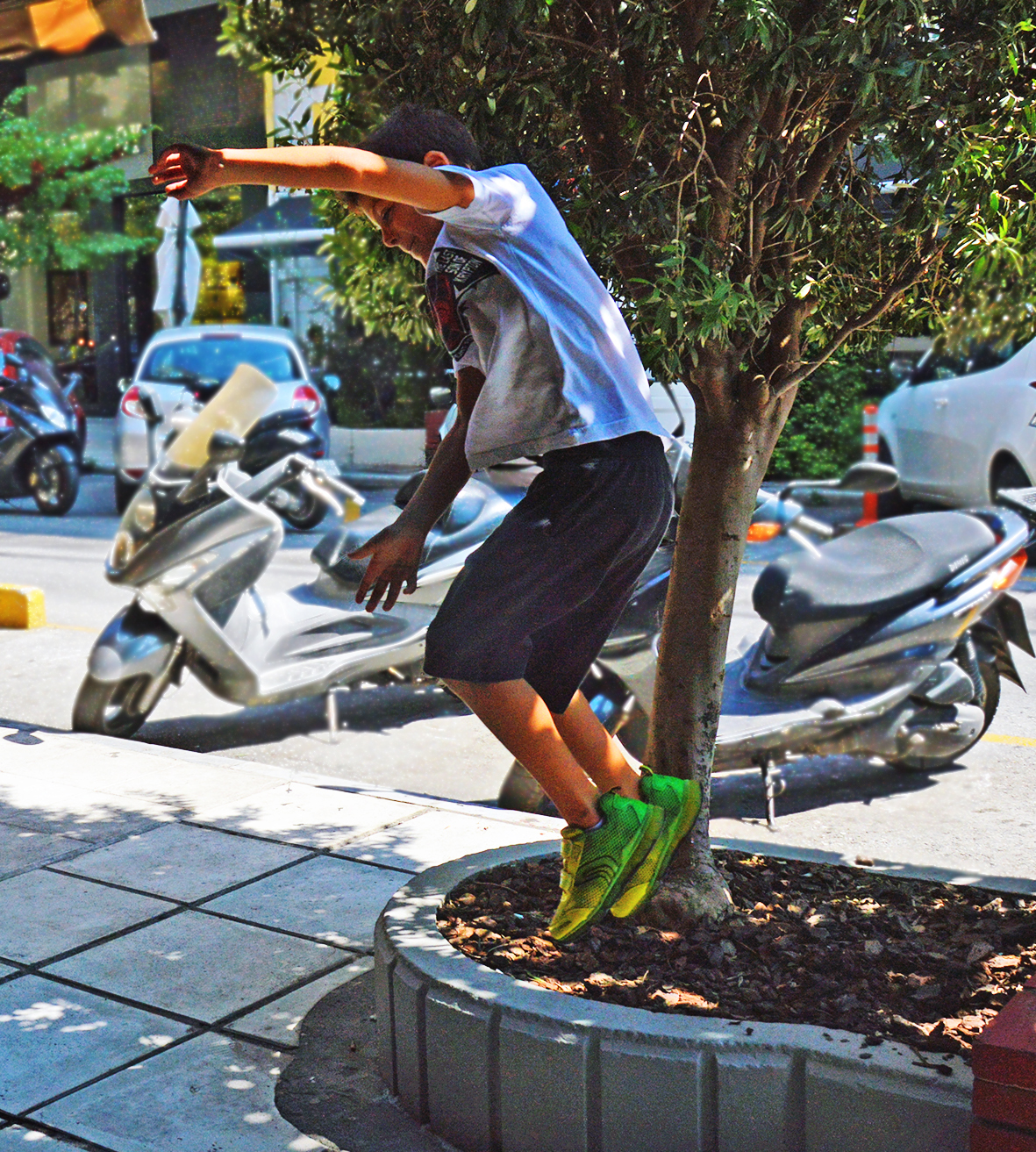 Το έμαθα από τον Λάζαρο. Κάνουμε παρκούρ στην παιδική χαρά, αλλά στο σχολείο δεν κάνουμε, γιατί έχει παντού διευθυντές.