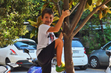Πηγαίνει δευτέρα δημοτικού και, προς το παρόν, πηδάει από δέντρα και τοιχάκια. Από π…